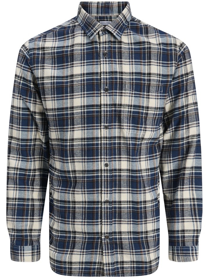 Kledingmaatgids - Jack & Jones James Long Sleeve Flannel Shirt Navy Blazer