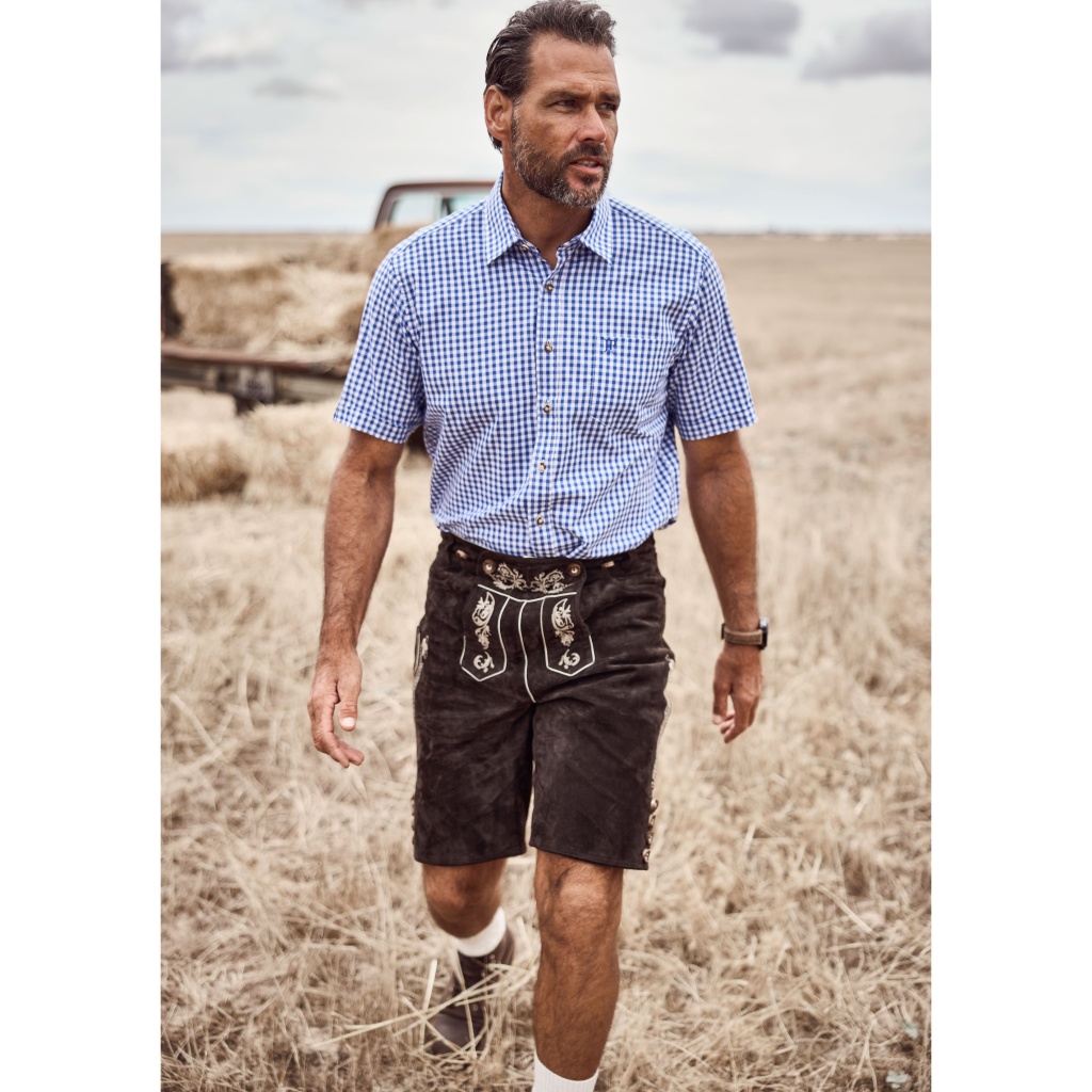 Kledingmaatgids - JP1880 Short Sleeve Check Print Traditional Shirt Blue