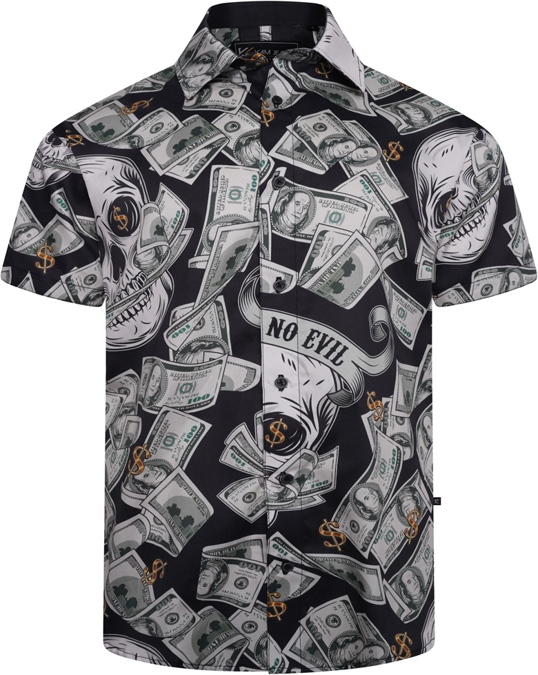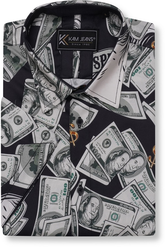 Kledingmaatgids - Kam Jeans 6064 Dollar Bills Print Short Sleeve Shirt Black