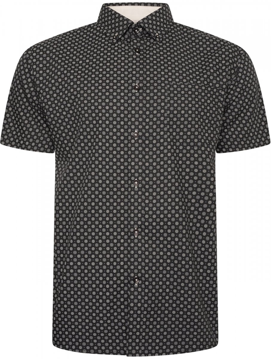 Kledingmaatgids - Kam Jeans 6296 All Over Geo Short Sleeve Shirt Black