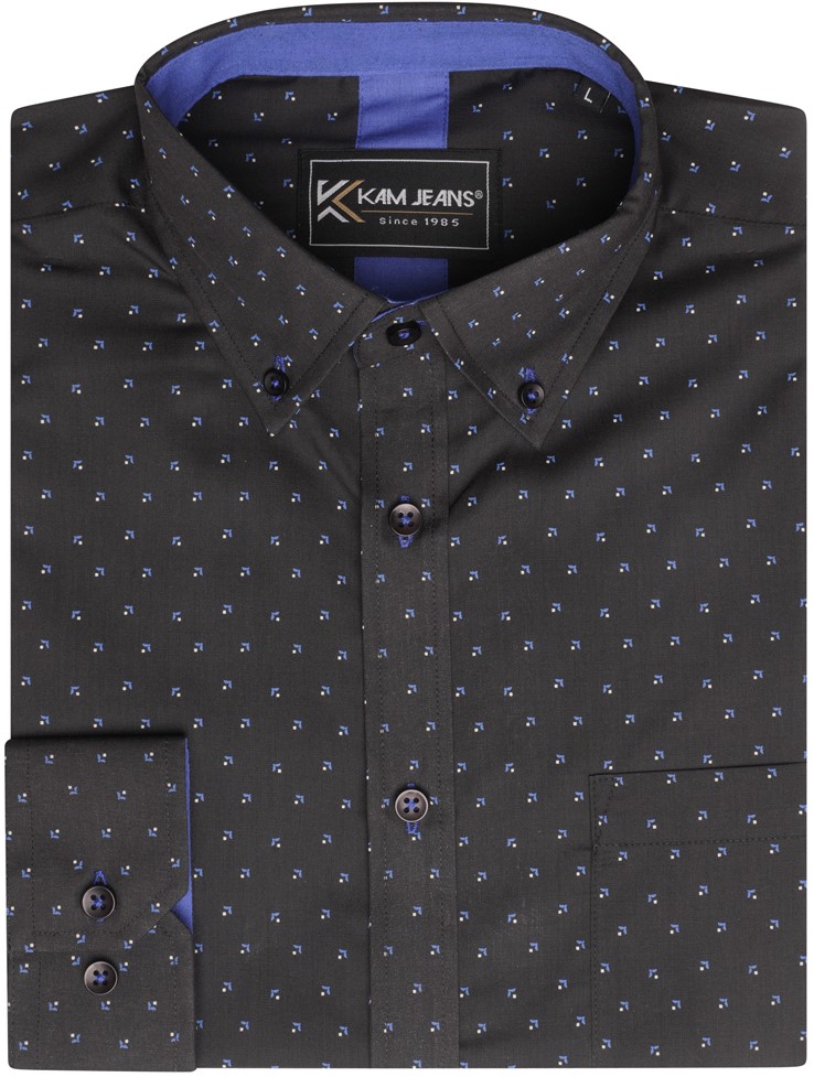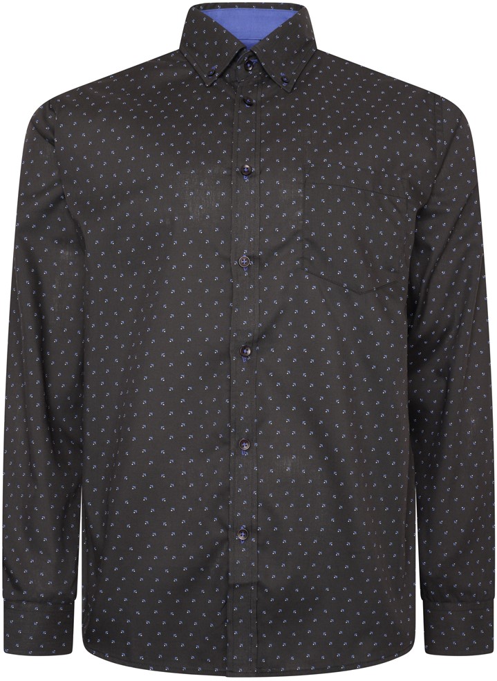 Kledingmaatgids - Kam Jeans 6297 Long Sleeve All Over Blue Dobby Print Shirt Black