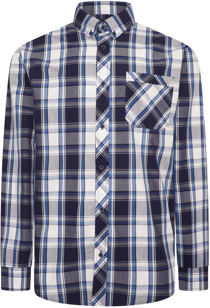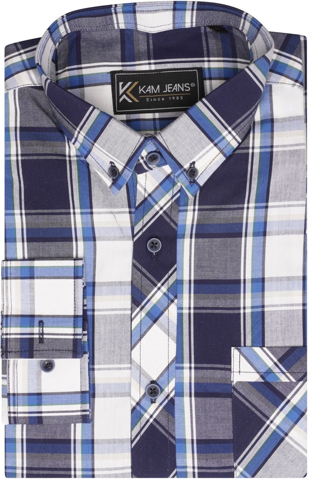 Kledingmaatgids - Kam Jeans 6301 LS Casual Check Shirt Navy