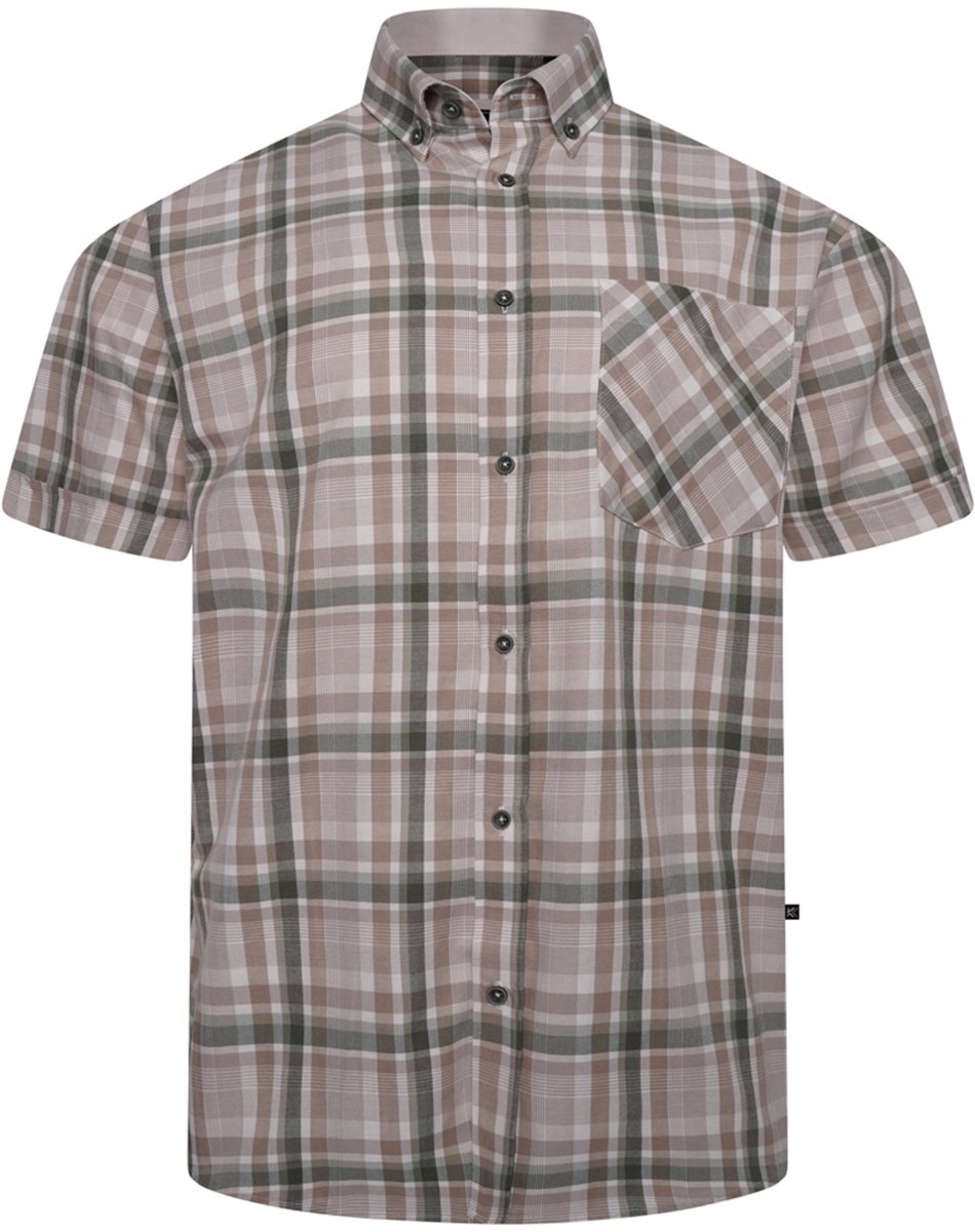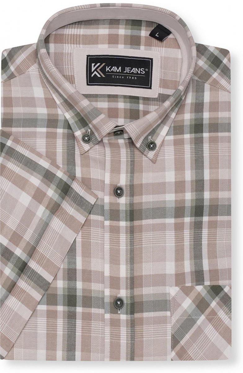 Kledingmaatgids - Kam Jeans 6339 Checked Short Sleeve Shirt Beige