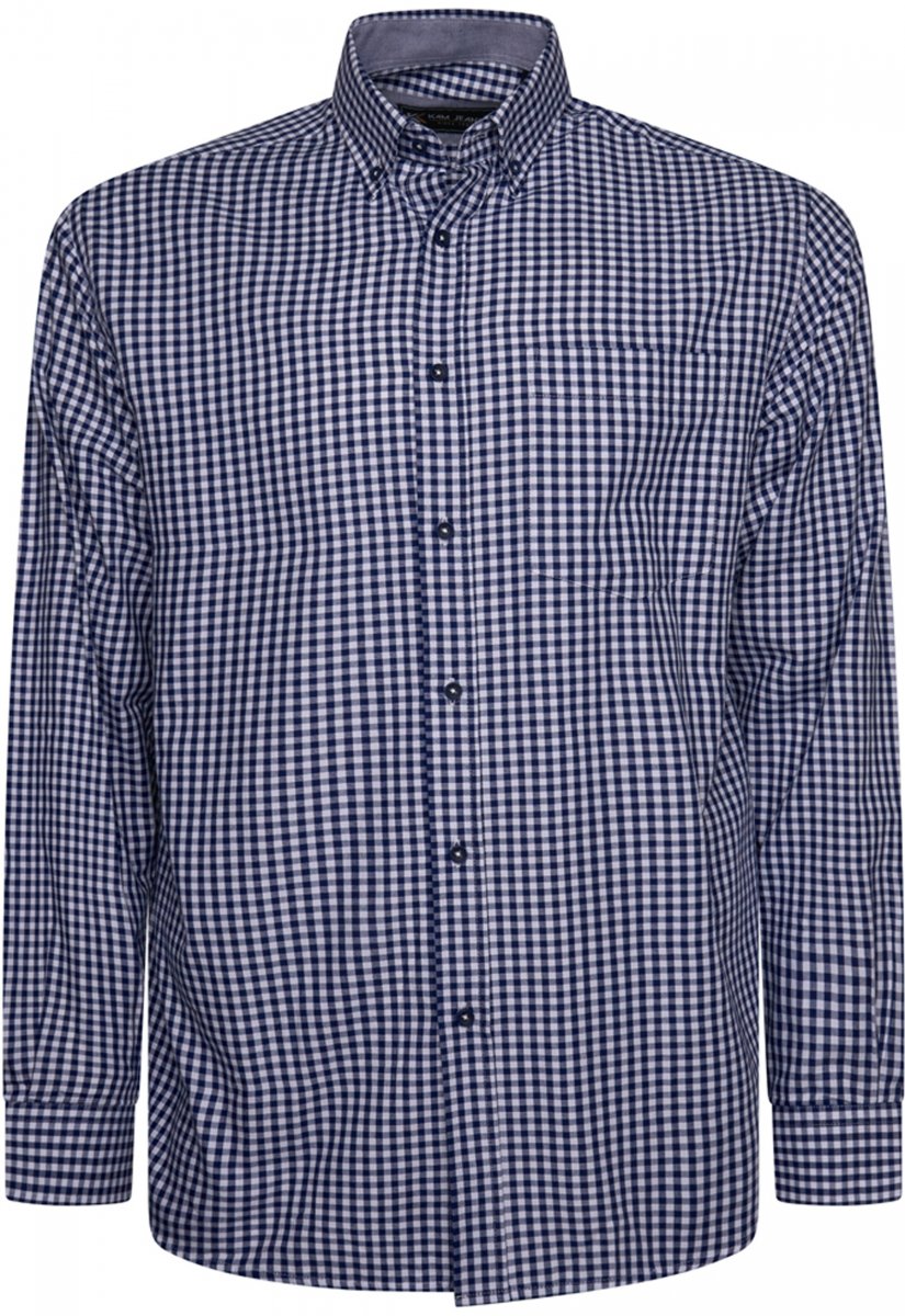 Kledingmaatgids - Kam Jeans 6351 Classic Gingham Shirt Long Sleeve Navy