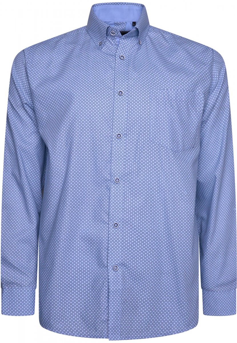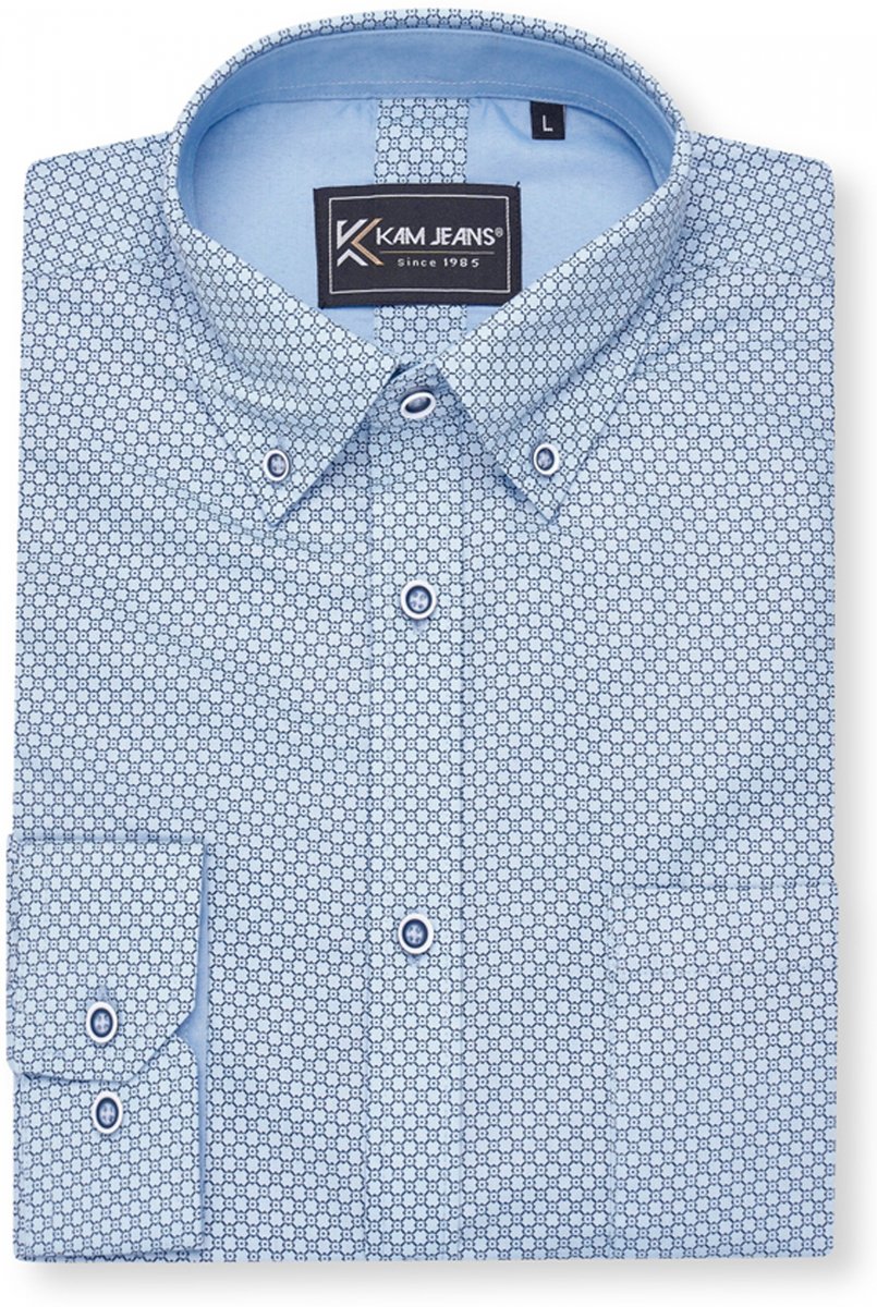 Kledingmaatgids - Kam Jeans 6361 All Over Geo Print Long Sleeve Shirt Sky Blue