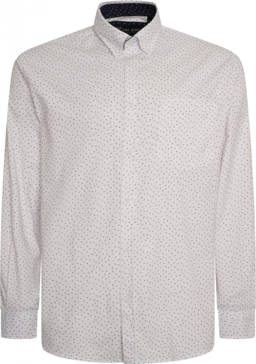 Kledingmaatgids - Kam Jeans P037 Dobby Print Stretch Long Sleeve Shirt White