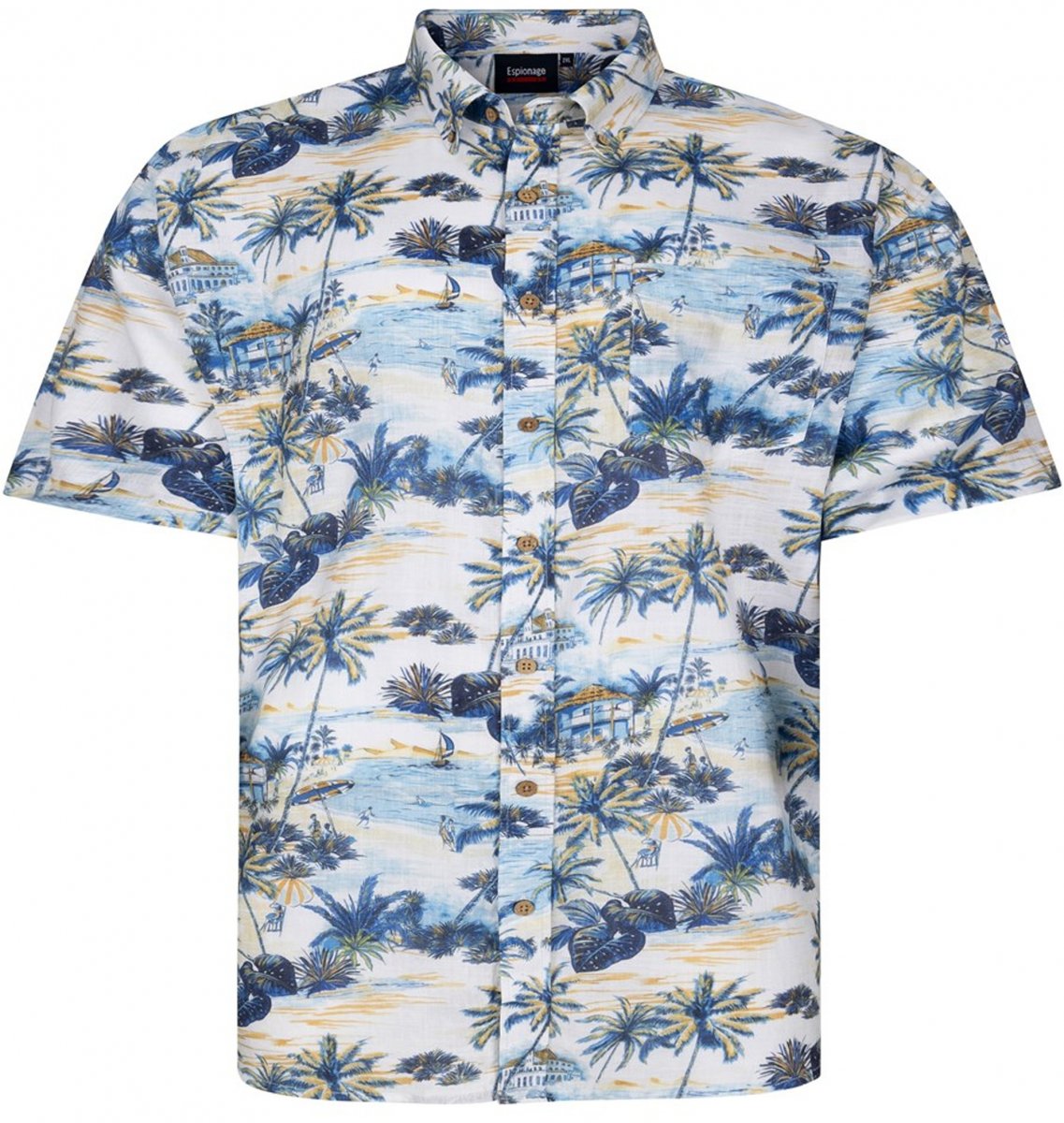 Kledingmaatgids - Espionage SH469 Short Sleeve Palm Printed Shirt Blue/Lemon