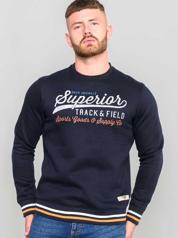 Kledingmaatgids - D555 Marlow Printed Crew Neck Sweatshirt Navy