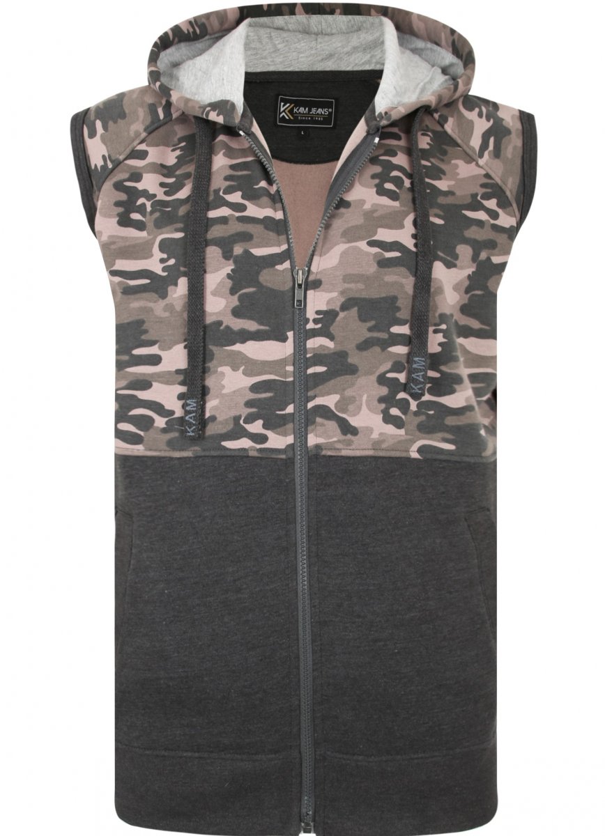 Kledingmaatgids - Kam Jeans 7039 Camo Panelled Vest Charcoal