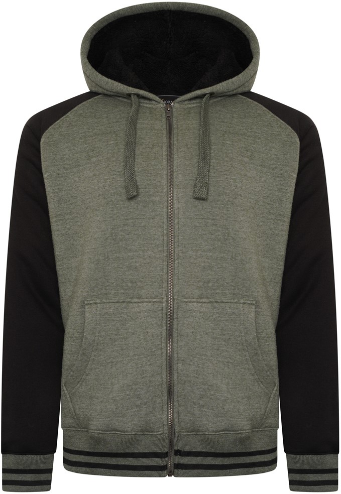 Kledingmaatgids - Kam Jeans 7075 Raglan Zip Thru Sherpa Hoodie Black/Khaki