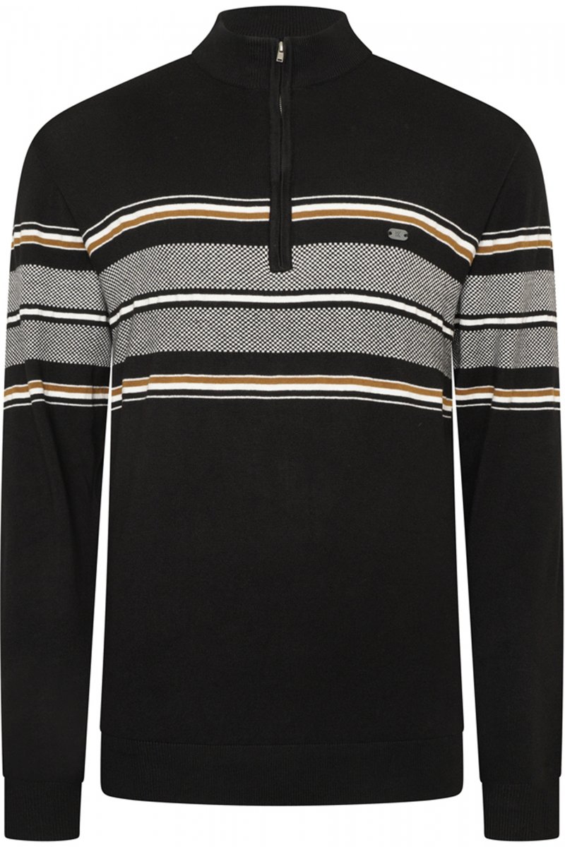 Kledingmaatgids - Kam Jeans 93 Stripe 1/4 Zipper Knitted Sweater Black