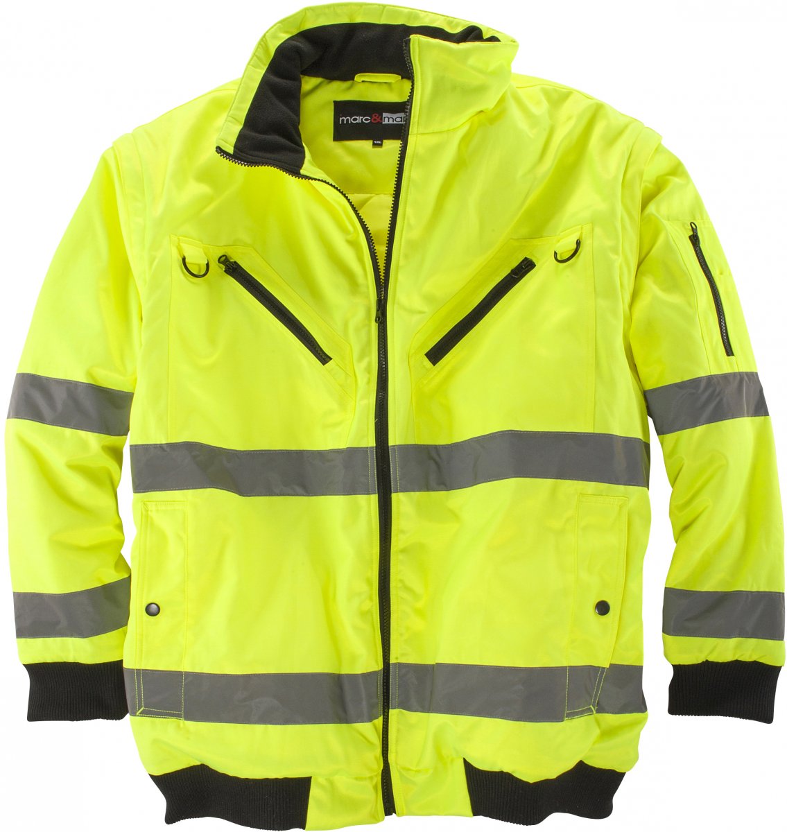 Grote maten High-Vis VestBeschikbaar bij ons in de maten 3XL-10XLMARC & MARKGemaakt van 40% katoen, 60% polyesterHet kleur is geelWassen op 40°CelsiusDeze jas heeft twee binnenzakken zonder sluitingSeizoenskledij - kledingmaten worden niet opnieuw aangevuld